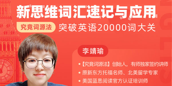 立即报名李靖瑜老师新思维词汇课彻底打败词汇贫乏这一英语学习拦路虎,掌握词汇记忆及应用技巧,更能帮你的孩子避开英语学习的弯路。老师是打辅助,前提是你自己也要多加努力,老师的话就是提供给我们的学习方法和方向,剩下的还要多记、多背,还有不断地练习,多加实操演练!要明白,自己才是核心!