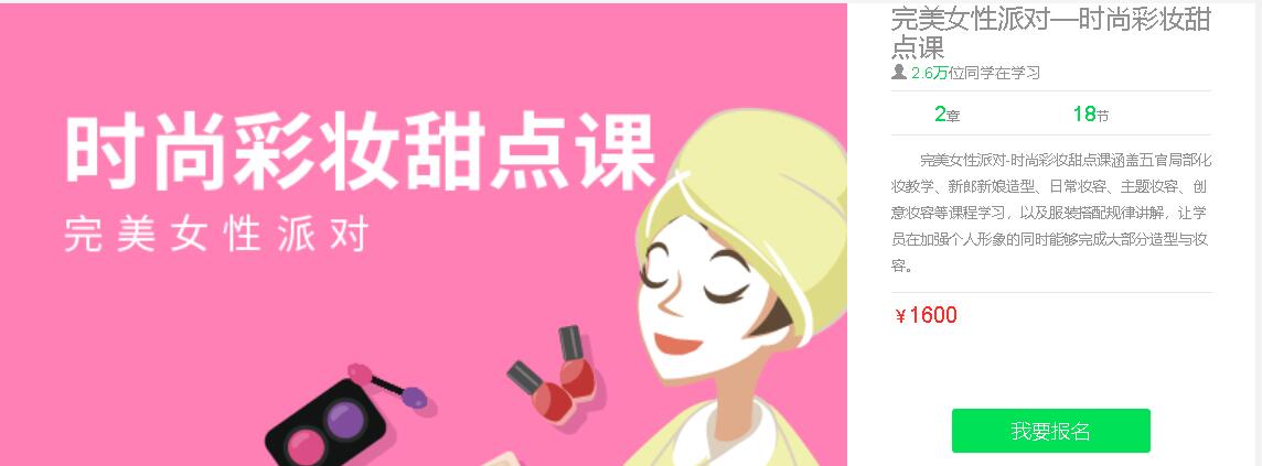 课程来自大鹏教育:完美女性派对—时尚彩妆甜点课,主讲:浩然老师,共两章18节课,售价1600。本课程主要针对从0开始的化妆小白们,从每个步骤分析详解,让每个学员系统学会美妆与服装搭配,不用为妆容烦恼。化妆是美容的手段之一,运用化妆品和工具,采取合乎规则的步骤和技能,对人的面部、五官及其他部位进行渲染、描画、整理、注重立体印象,调整形色,掩饰缺陷,表现神采,从而达到美容目的。
