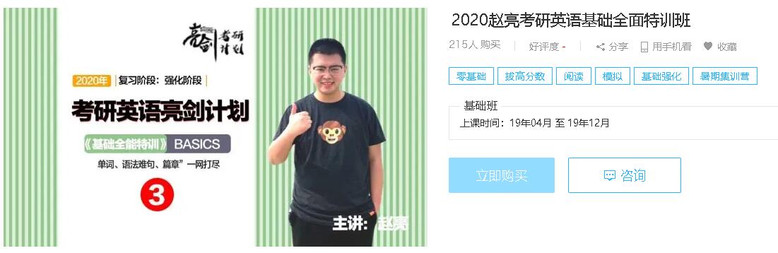 2020赵亮考研英语基础全面特训班,授课老师国内著名英语培训专家,百度云网盘下载[共47.1G],从0开始,通过词汇、翻译、阅读、写作等,从各个方面全面攻破考研英语打牢基础,之后详细讲解每一道题的出题套路和应对策略来实现质的飞跃,最后通过冲刺串讲和作文模板保证大家全面掌握吸收所有必备知识及技能!不管基础如何,不管是否喜欢英语,都保证你爱上英语学习,并拿下考研高分。
